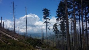 Przed samym szczytem nie ma drzew zostały wycięte, nie wiem tylko czy wcześniej zostały powalone przez wiatr czy celowo oczyszczono to miejsce.
