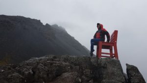 Wracamy do Hofn. Po drodze skręcamy przed tunelem na punkt widokowy. Jesteśmy świadomi, że za wiele to się nie naoglądamy bo wszystko okala mgła, ale wjeżdżamy po szutrowej drodze na szczyt. Bardzo powoli by wyskakujące kamienie nie obiły nam auta.