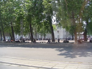 Weszliśmy do środka, w muzeum jak to w muzeum, byliśmy tylko my, tylko dla nas włączano światło i przechodziliśmy do kolejnych sal, w sumie nawet nie pamiętam co w nim było, cały czas myślałem o tych dziewczynach na zewnątrz, w końcu znalazłem okno gdzie nie było matowej szyby i mogłem na nie patrzeć z góry. Miały akurat przerwę, leżały w cieniu gmachów wokół placu Kim Ir Sena, widziałem, że sobie coś pisały na kartkach, miały otwarte książki, sprawiały wrażenie jakby się uczyły. Pani przewodnik spytała czy tak bardzo nam się nie podoba, wszyscy jacyś byliśmy nie zainteresowani malowidłami, dyplomacja kazał nam odpowiedzieć że mamy intensywne zwiedzanie od tygodnia, że jesteśmy zmęczeni i jeśli tak to wygląda to przepraszamy. Weszliśmy do sali gdzie ni było okien, na pech zgasło światło i brakło go na dłużej, od tego momentu zwiedzaliśmy tylko sale na zewnątrz muzeum, które miały okna, to przyspieszyło zwiedzanie i tak nudnego muzeum, ja w zasadzie myślałem o tym by jak najdłużej wykorzystać te kilka sekund gdy będę pomiędzy wyjściem a samochodem by przyjrzeć się po raz kolejny dziewczynom.