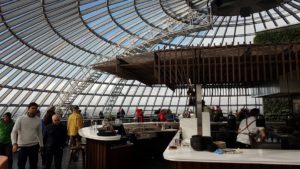 Zatrzymujemy się tu na dłużej, przyglądamy się całej konstrukcji i zapartym tchem oglądamy mieniące się kolorowym światłem szklane ściany. Przybliżamy się i oddalamy patrząc na tą zachwycającą budowle.