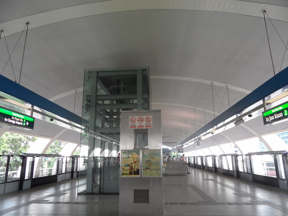 Bilety kupuje się w automacie. Ale macie już dolary, wymieniliście w kantorze. Wsiadacie w linię zieloną – zresztą tylko ta jest, żeby się wydostać z lotniska. Metro odjeżdża co kilka minut. Musicie się dalej przesiąść na stacji Tanah Merah – wysiadacie i na tym samym peronie wsiadacie do kolejki w kierunku – Joon Koon.